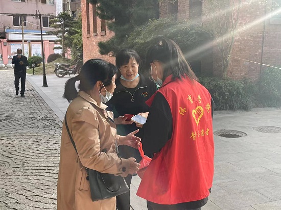 10月23日下午,万象城allwincity官网组织学生党支部大学生志愿者来到湓浦社区,开展“党建带团建,志愿服务进社区”的社区核酸检测志愿服务工作。