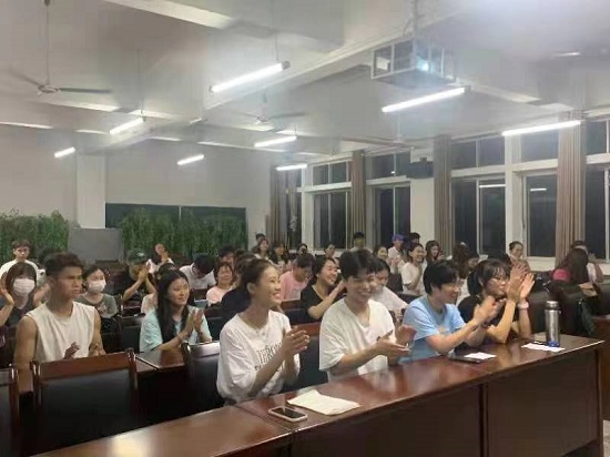 最后今年已经考取研究生的四位优秀同学赖淑琪、李露梅、王思怡、唐榜强分享了他们的考研经验,从不同角度分享了自己的考研心得,他们强调学习不仅要积累经验,掌握技巧,更要以平常心态看待考试,只有树立信心、坚持不懈,才能取得最终成功。在现场答疑环节,同学们就自身专业提高、复习方法和时间等方面积极地与老师、师兄师姐们互动交流。