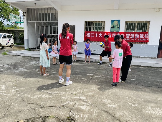 6月23日上午,社会实践队来到柴桑区岷山乡红旗学校开展“情暖童心送希望,以体育人助发展”为主题的关爱留守儿童志愿服务活动,为留守儿童开展红色教育、国防教育、安全教育、体育教学等多种形式的精准关爱志愿服务活动。