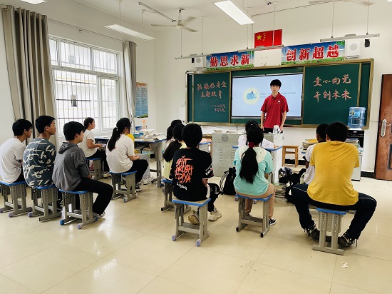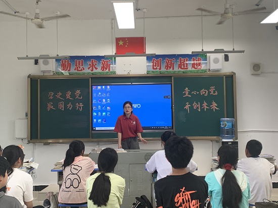 炎炎烈日阻挡不了同学们的热情,首先刘晓梅老师以红色音乐党课形式开展了党史故事,通过教唱儿歌《王二小放牛郎歌曲》为同学们讲述了抗日小英雄王二小的感人事迹,引导青少年儿童牢记革命历史、传承红色基因,珍惜和平生活、勇担时代责任。A2011班退役军人眭元海同学分享自己的军旅生活和播放征兵宣传片,传递了当兵光荣的正能量,引领青少年儿童增强国防意识,续写先辈光荣,立志保家卫国。A2011班刘伟同学通过常识讲解、视频播放、案例列举和安全知识竞答等方式进行防溺水安全教育宣传,引导同学们学会对自己和他人的生命负责,牢固树立生命至上的安全理念。