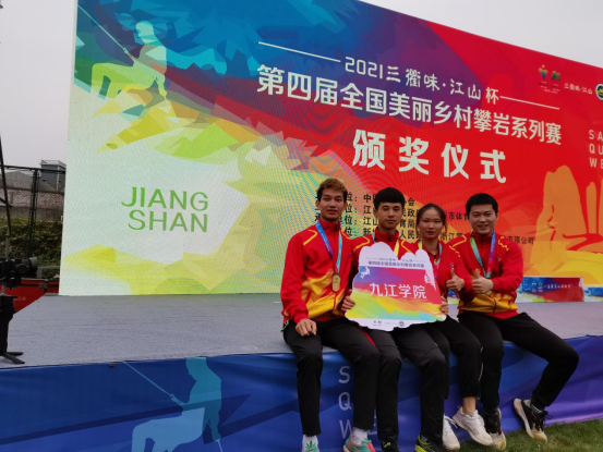 10月18日,2021“三衢味•江山”杯第四届美丽乡村全国攀岩系列赛在浙江省江山市盛大开赛。在占玉珍老师的带领下,万象城allwincity官网选派罗涛、欧亿林、陈浩、曾凡美四名同学组成作战小分队代表九江学院参赛,并取得了第七名的好成绩。此次比赛展现了九江学院学子昂扬向上的精神风貌。