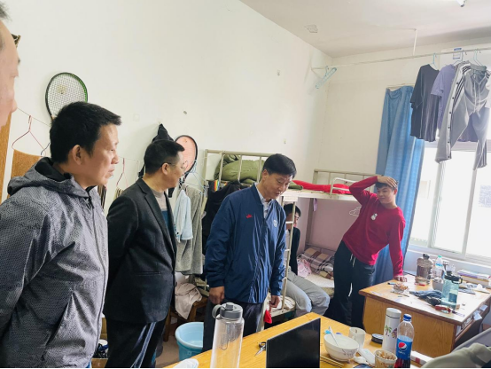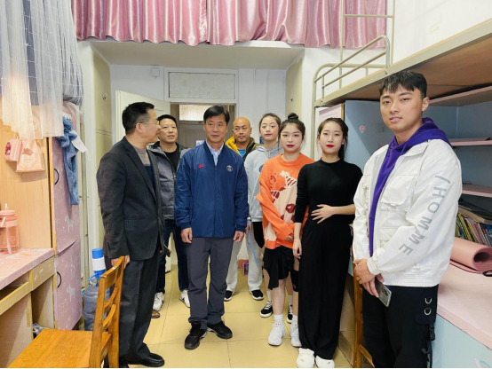 段宝斌院长一行深入35栋、20栋和13栋等学生宿舍楼,了解同学们的学习、生活等情况,叮嘱学生合理规划大学生活,强化卫生健康意识,提高安全防范意识,并重点检查了学生宿舍是否有使用违章电器、超载用电、私拉电线情况。
