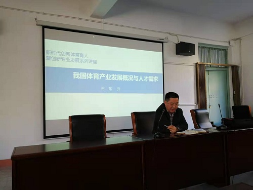 付和忠书记为“系列讲座”做了开讲动员,提出了新时期体育人才的培养应该以德育为基础,实现综合素质和综合能力的教育,力争培养出符合体育强国要求和实现人民美好生活需求的体育人才。王东升博士做了《我国体育产业发展概况与人才需求》的报告,从我国当前体育产业的发展情况为逻辑起点,分析国内体育产业发展中的人才需求与供给情况,指出了体育产业类人才需求的质量与数量,以及目前国内体育人才供需中面临的问题,最后,针对应用型体育人才的出路提出了具体建议。