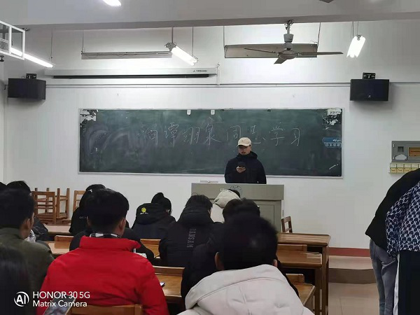 会上,曹钧老师带领我们学习了谭翊泉同志扶贫的先进事迹并观看了团中央宣传部推出的《青年的力量》视频。随后,曹钧老师围绕“如何深入学习谭翊泉同志的吃苦奉献精神”主题引导全体学生干部进行学习讨论,进一步了解了他的的先进事迹,深化了学习效果。最后,由曹钧老师对讨论会的内容进行总结发言。通过学习,同学们纷纷表示,要认真学习谭老师的吃苦耐劳,勇于奉献精神。
