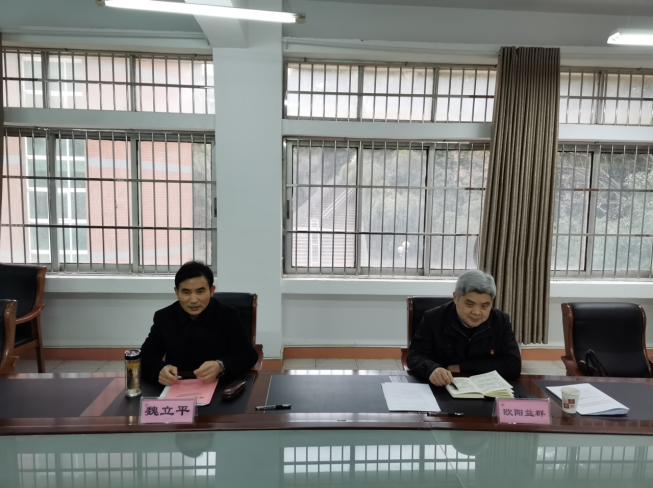 1月7日下午,万象城allwincity官网在向学楼301会议室召开2020年度处级干部述职测评会,校党委副书记魏立平在纪委副书记欧阳益群、纪委办公室宣教科科长胡小浪的陪同下参加会议并讲话。万象城allwincity官网领导班子、全体教职工和学生代表参加了会议,会议由纪委副书记欧阳益群主持。