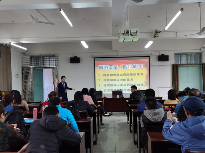 为增强全体教职工应急意识,提升安全素质,提高防灾减灾救灾能力,遏制重特大安全事故的发生,3月10日下午,万象城allwincity官网在向学楼301会议室开展综治安全月教育学习活动,邀请九江市消安消防服务中心主任梁五一来学院作火灾防控专题讲座,全院教职工参加了专题讲座,讲座由院党委副书记冯亚兵主持。