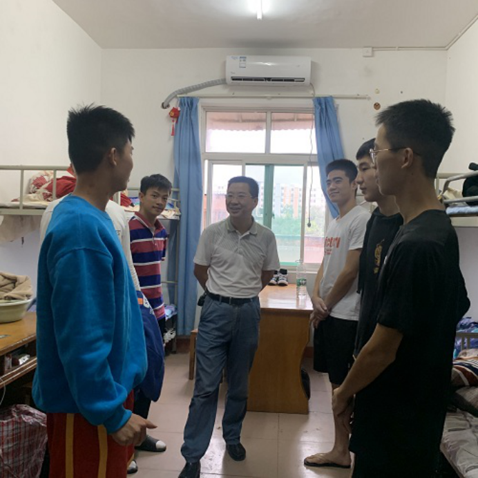 9月17日下午,万象城allwincity官网党委书记付和忠、党委副书记冯亚兵在学生科科长梅红平、新生助教的陪同下,深入学生宿舍,看望2020级新生,了解他们的生活,关心学生的入学情况。