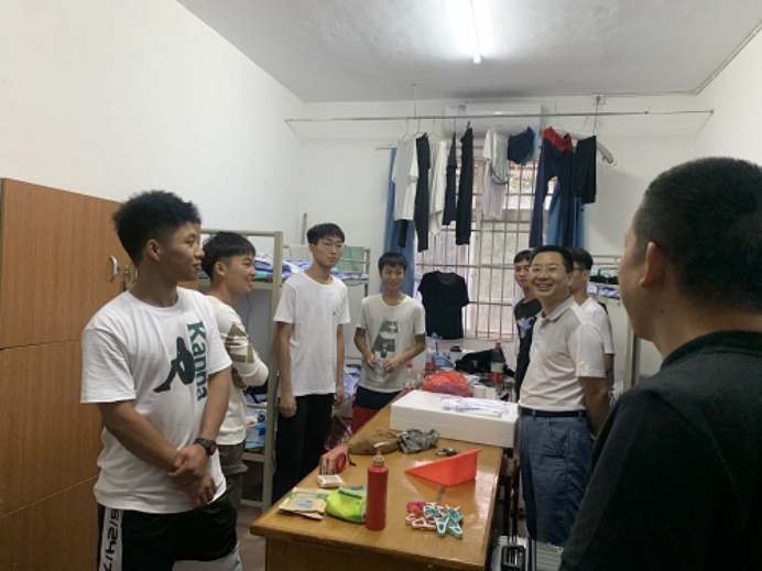 在学生寝室,付和忠一行仔细查看宿舍环境卫生、用电安全、消防安全设施等情况,亲切地同新生们交谈,询问大家来自哪里、专业如何、入学报到是否顺利、是否适应学校环境,并耐心地解答新生提出的问题,嘱咐同学们要特别注意宿舍安全问题,维护好寝室卫生,营造安全、舒适、和谐的大学宿舍。