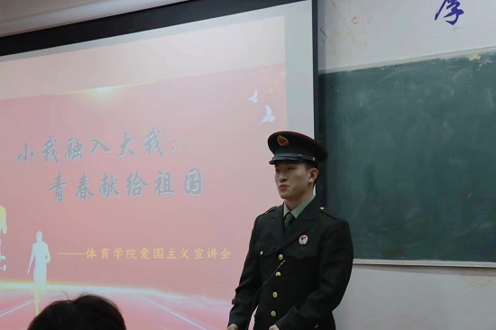 本次爱国主义宣讲活动,不仅让同学们深入了解了大学生应征入伍的相关政策规定,更加激发了同学们的民族自豪感和社会使命感,把热血挥洒在实现强军梦的伟大实践之中,实现“携笔从戎、报效国家”的人生价值。