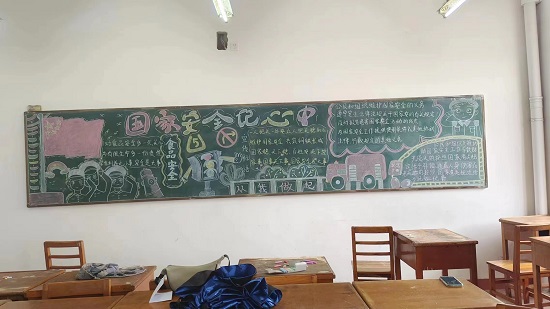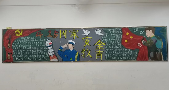比赛前,同学们借助书籍、网络等渠道了解有关国家安全、总体国家安全观的知识,通过黑板报的形式,执笔画出自己对落实总体国家安全观、提高全民维护国家安全的意义的理解。学生会成员组成的评审团通过黑板报整体在画面美观、展现国家安全意义等方面进行公平公正的打分。
