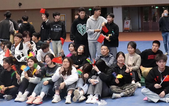 随后,内容丰富、精彩纷呈的文艺表演正式开始。首先由健美操校队带来的一支街舞《深藏blue》将场上的气氛点燃。接下来的歌曲表演、瑜伽技巧展示、口琴表演、花样跳绳、现代舞、中国武术、舞狮表演等诸多精彩的节目引得观众阵阵欢呼声,同学们用跳动的音符、曼妙的身姿、精湛的专业技巧唱响了青春的活力。晚会中还设有紧张刺激的游戏互动及抽奖环节,送花、撒糖等等惊喜不断。最后,同学们齐唱《我和我的祖国》,在青春激昂的氛围中结束了本次文艺汇演。