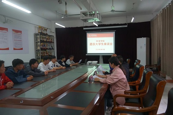 本次座谈会召开是把主题教育和学院学生工作的有机结合,深入调研万象城官网退伍学生的大学生活、学习和思想状况,加强了退役学生之间的沟通交流,积极引导退役学生将军人的情怀和品质融入到校园生活中!