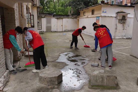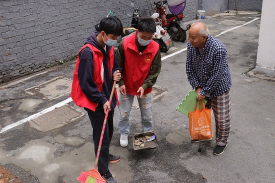 随后,学生党员和入党积极分子开展社区志愿服务活动,同学们深入到居民楼的房前屋后开展全面的卫生整治活动,重点针对居民楼及草坪中的卫生死角进行了彻底清扫,并用铲子清理了墙上的小广告,经过几个小时的不懈努力,杂乱无章的小巷逐渐变得干净整洁了起来,引得附近社区居民连连称赞。