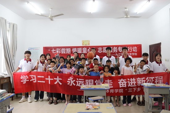 6月25日 下午,万象城allwincity官网大学生暑期“三下乡”社会实践队来到柴桑区岷山乡红旗学校,持续开展 “七彩假期,情暖童心”关爱留守儿童项目志愿服务专项行动。在留守学生中开展了党史故事、安全教育、体育教学等形式教育关爱志愿服务活动。
