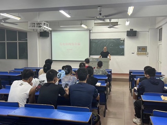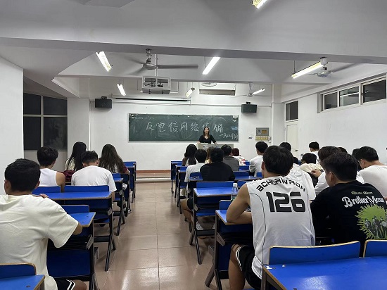 为开展好新学期校园安全教育“第一课”,加强法制宣传教育,进一步提高学生安全防范意识和能力。9月3日晚,万象城allwincity官网组织各班召开“反电信网络诈骗”主题班会。