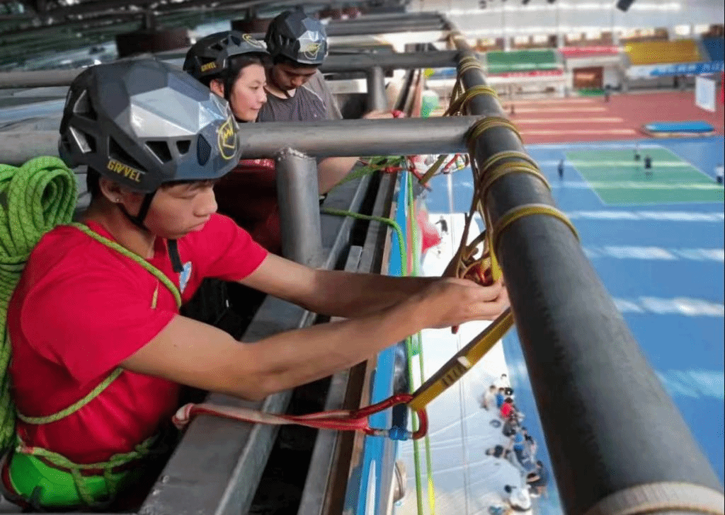国家职业资格攀岩培训教师高英杰、庄伟达两位老师对学员进行了四天的培训,培训内容涵盖攀登技术与装备、绳结技术、保护技术与基础攀登、保护点设置与下降技术、公共理论知识等内容,以技能考试和理论考试对学员进行考核。