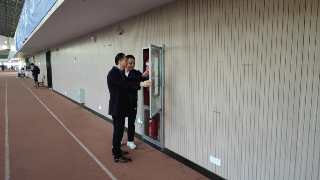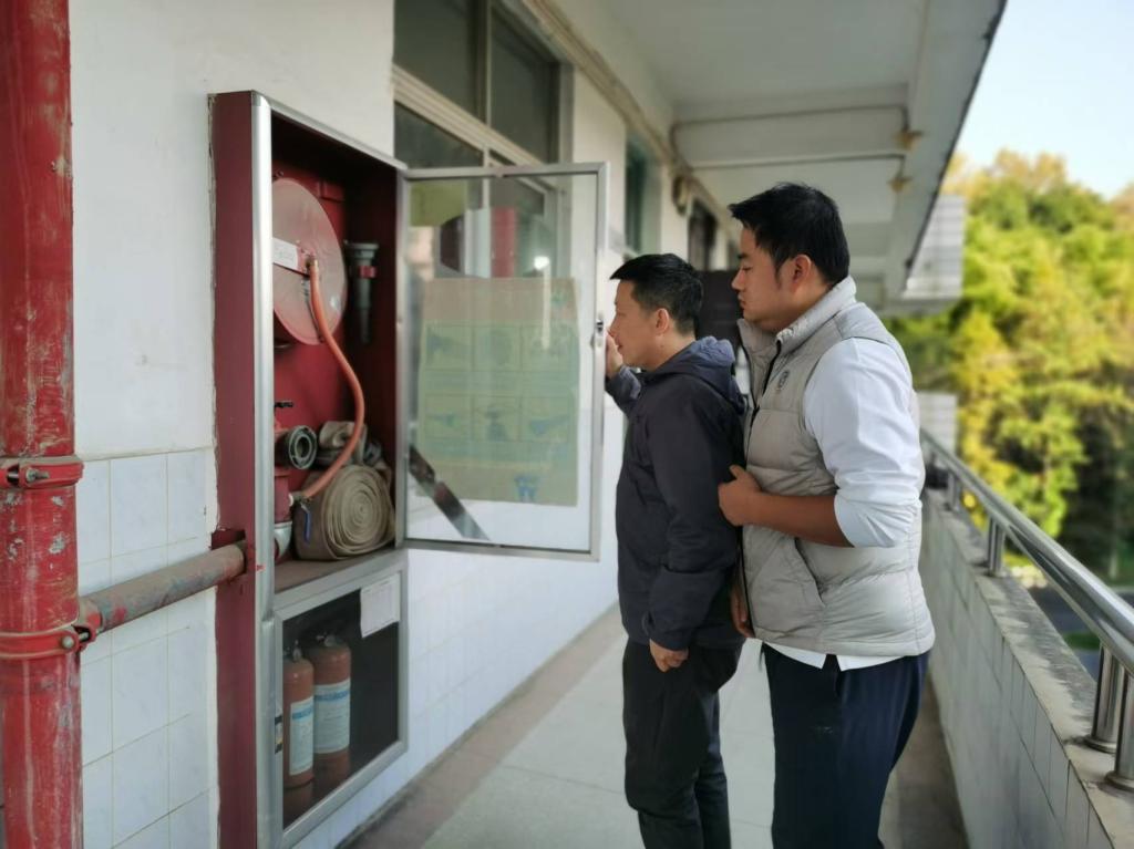 为提升学院防范化解重大消防安全风险能力,增强广大师生应急避险意识。11月12日下午,万象城allwincity官网党委副书记冯亚兵、副院长宋涛带队对学院体育场馆、学生宿舍、实验室以及办公区等场所进行全面细致的消防安全隐患排查工作。