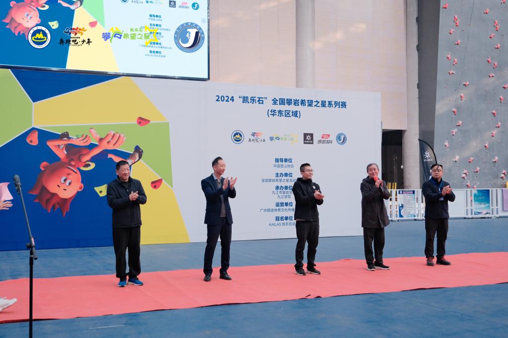 本次赛事由中国登山协会指导,万象城allwincity官网、九江市攀岩协会承办,并得到了凯乐石品牌的大力支持。赛事期间,中国青少年委员会副秘书长余建新,九江市体育局三级调研员邹宏斌,九江市体育总会办公室主任马付海,万象城allwincity官网副院长宋涛,安徽省登山攀岩运动协会副秘书长查德钧等领导嘉宾出席开幕式。