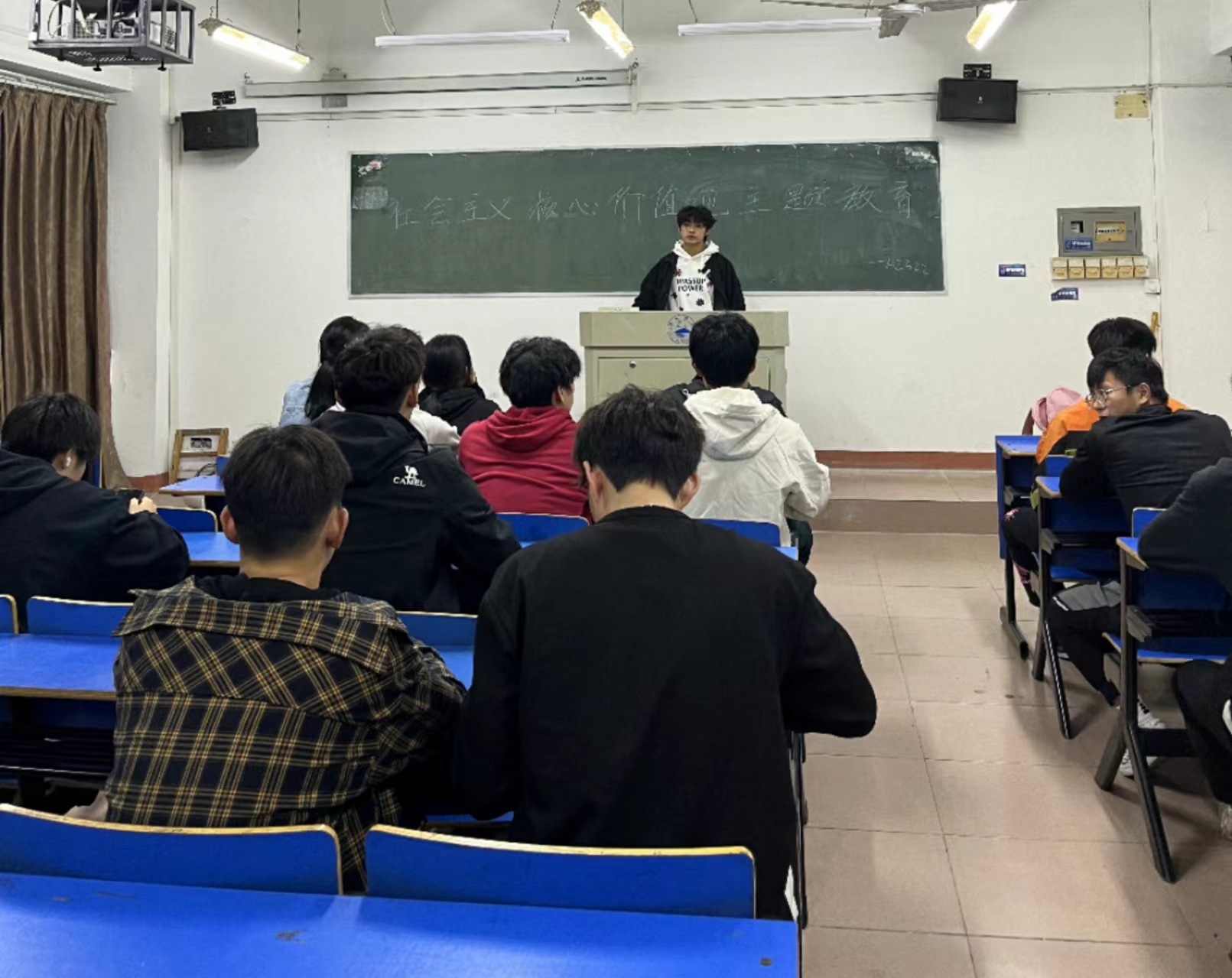 班会上,各班班主任深入浅出地阐述了社会主义核心价值观的重要意义和深刻内涵,从国家、社会、个人三个方面,十二个具体层面给出了最精准的浓缩,强调社会主义核心价值观既是我们国家社会、法制保障、道德文化方面所追求和实现的最高目标,又是作为具体人而需要恪守的基本行为规范。同学们纷纷表示,通过本次班会,他们要将社会主义核心价值观作为自己的行为准则,努力做一个有理想、有道德、有文化、有纪律的新时代大学生。