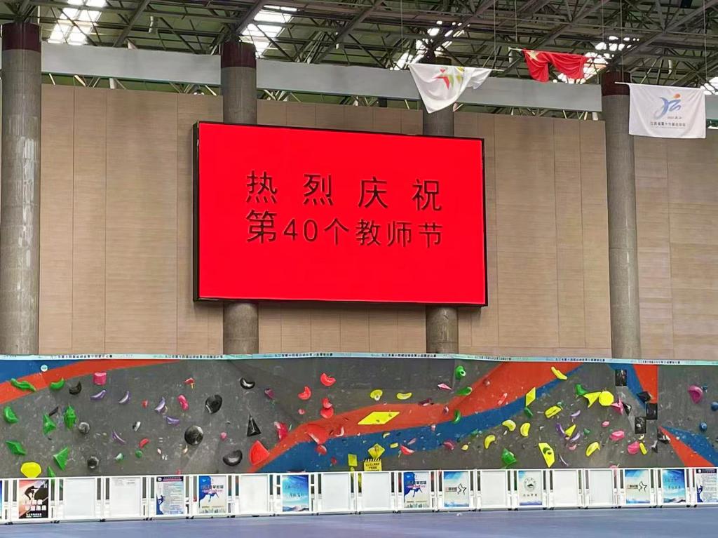 在这个充满敬意与感恩的教师节,学院综合体育馆大型的LED 屏上写着“庆祝第40个教师节”标语,在场馆中熠熠生辉,如璀璨的星空,为节日增添了一份浓厚的氛围。