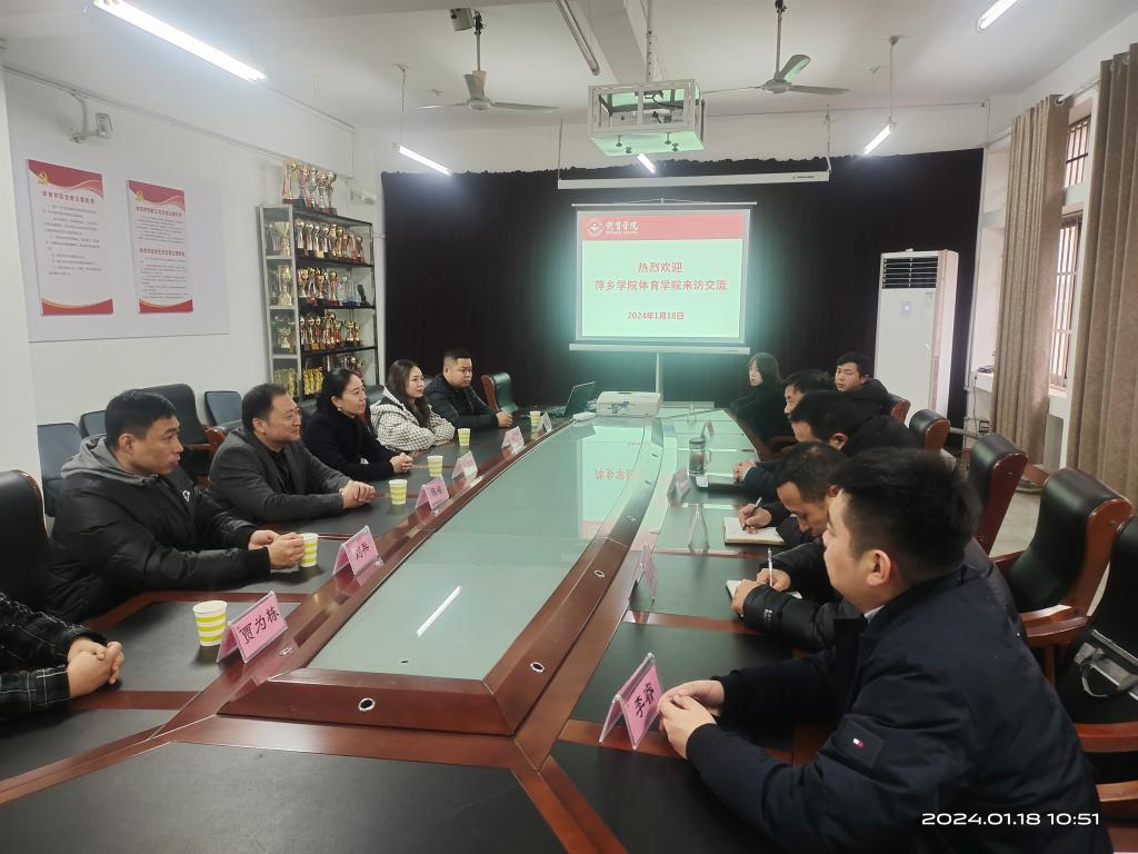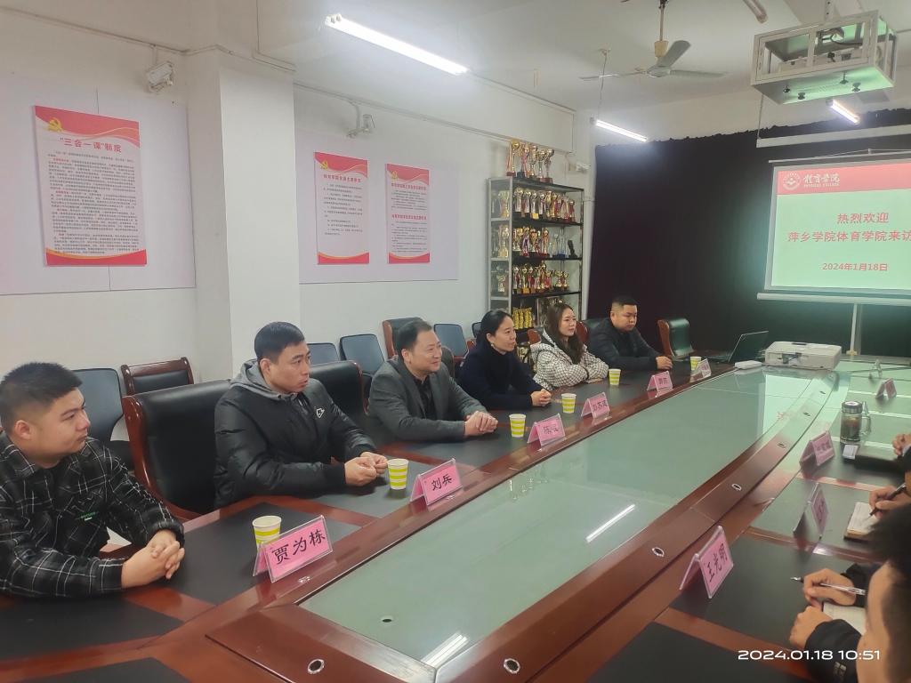 1月18日上午,萍乡学院体育学院院长陈岷、副院长彭苏建等一行来万象城官网交流与学习,院长段宝斌、副院长王东升及相关人员出席座谈会,座谈会由院长段宝斌主持。