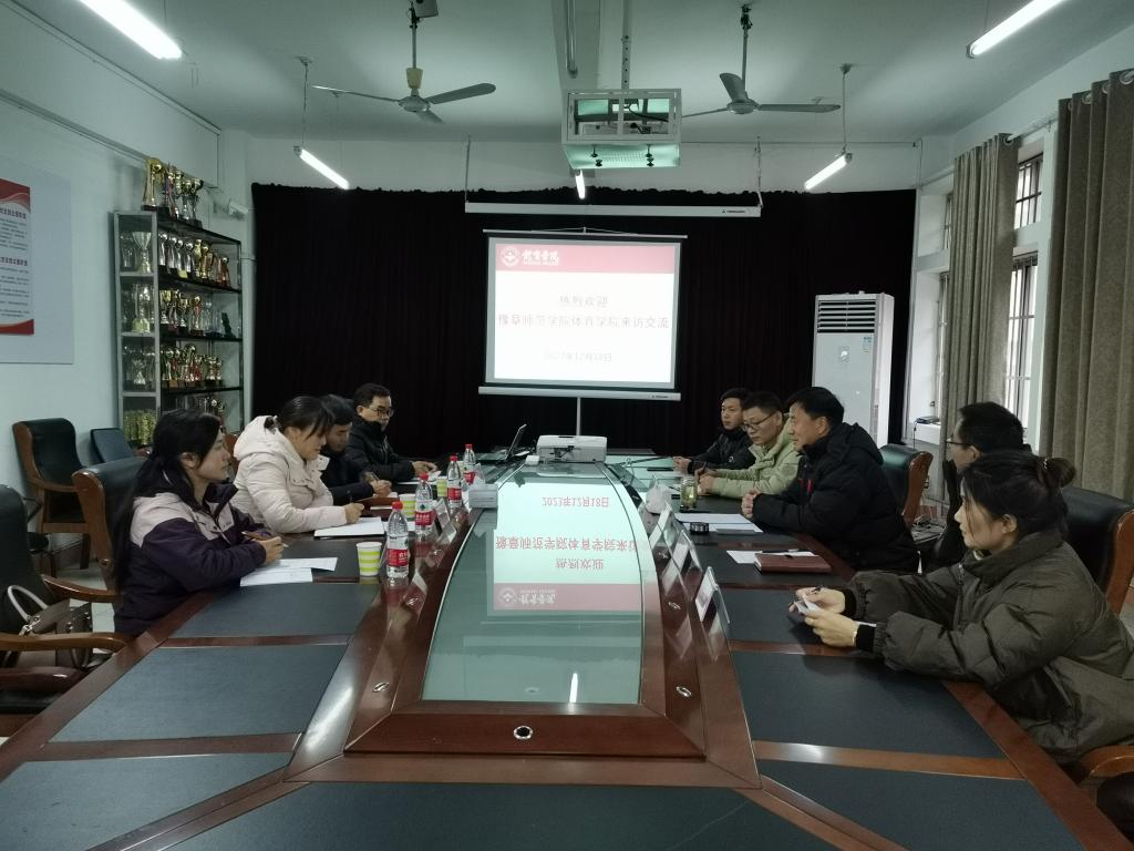 12月18日上午,豫章师范学院万象城allwincity官网院长梁芳一行来万象城官网交流。院长段宝斌、副院长王东升、办公室主任井红卫、体育教育专业和社会体育专业负责人出席座谈会,座谈会由院长段宝斌主持。