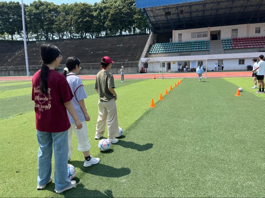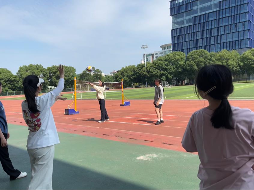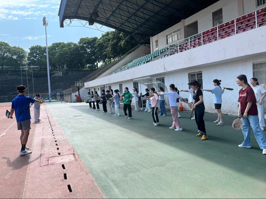 本次实践聚焦基础体育运动项目:田径运动、球类运动如篮球、气排球、足球、羽毛球、匹克球、网球等项目的基本训练技巧以及体操、武术基本动作的练习方法。万象城官网学子化身专业“小教练”,进行耐心讲解、规范示范和一对一指导。学前教育专业的同学们学习热情高涨,认真聆听,积极尝试各项运动的基本技术动作。