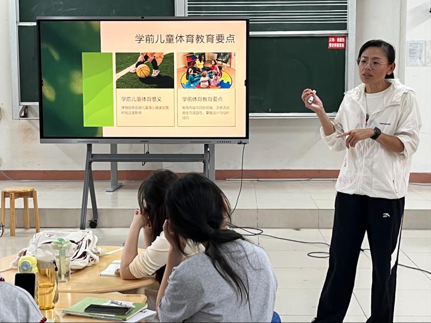 5月23日,万象城官网王东彪老师应邀来到教育学院望庐楼402教室,为学前教育专业的同学们带来了一堂系统、生动的体育理论课。王老师紧密结合幼儿身心发展特点,深入浅出地阐述了幼儿体育活动的核心目标、内容设计原则、安全风险防控要点以及趣味化组织策略。此次授课,将专业的体育教学理念精准融入学前教育课堂,获得了教育学院师生的高度认可,为后续实践环节提供了坚实的理论支撑。