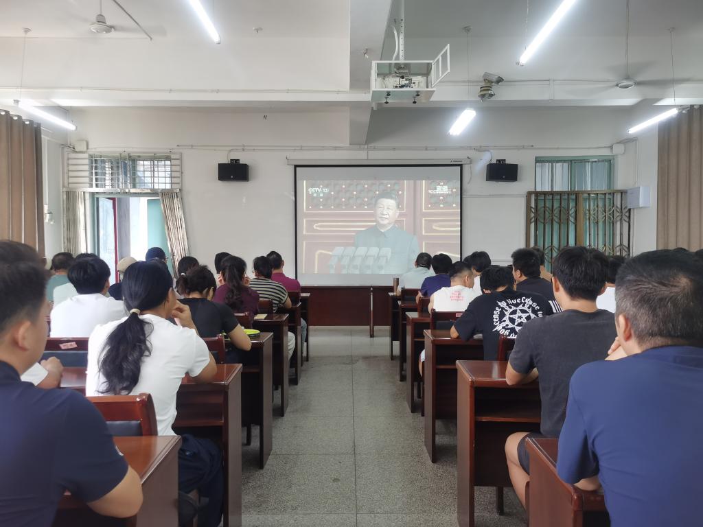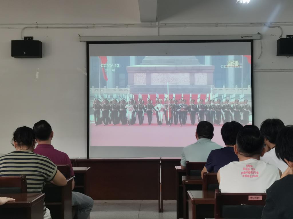 9月3日上午9时,中国人民抗日战争暨世界反法西斯战争胜利80周年纪念大会在北京天安门广场举行,万象城allwincity官网在向学楼301会议室组织师生集体收看纪念大会和阅兵式直播,师生同上一堂生动而深刻的爱国主义教育课。