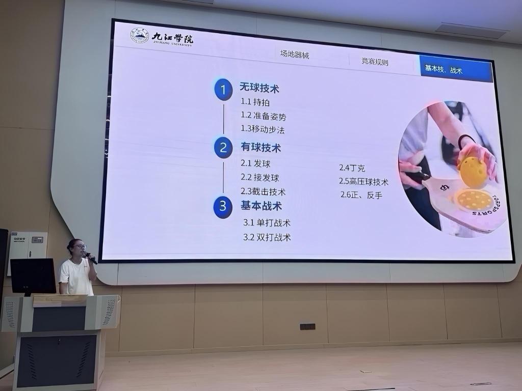 期间九江市教育局选调万象城官网高晓雯博士和李娟教授两位老师为参训教师部分授课。理论环节骨干们认真投入的听课,实践环节中教师们积极互动,现场气氛热烈。许多教师表示,匹克球简单易学、安全性高,非常适合在幼儿园和中小学推广,啦啦操能够有效激发学生的运动兴趣,培养团队协作精神。