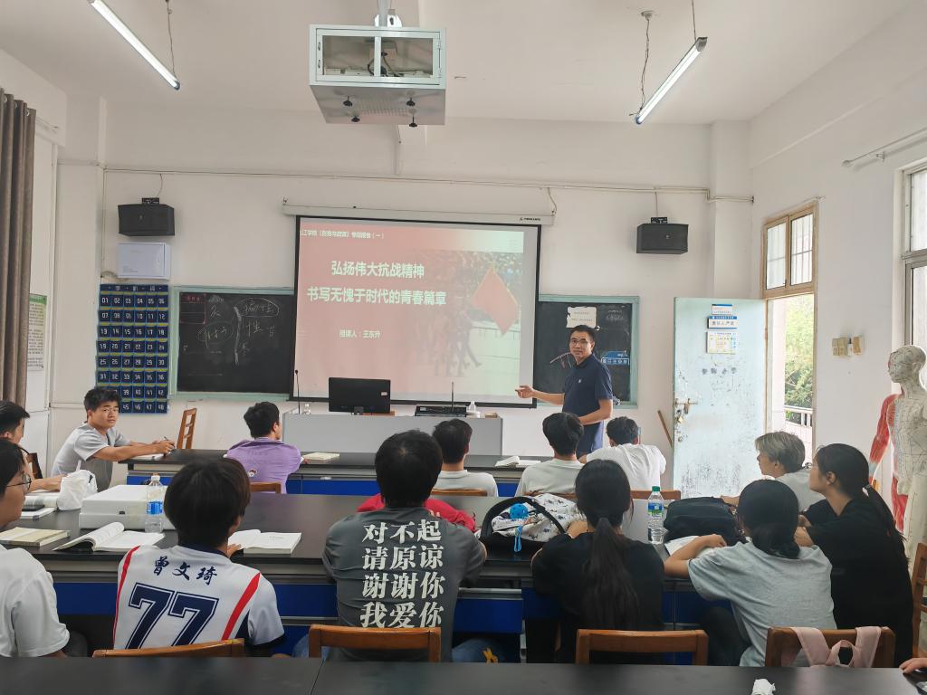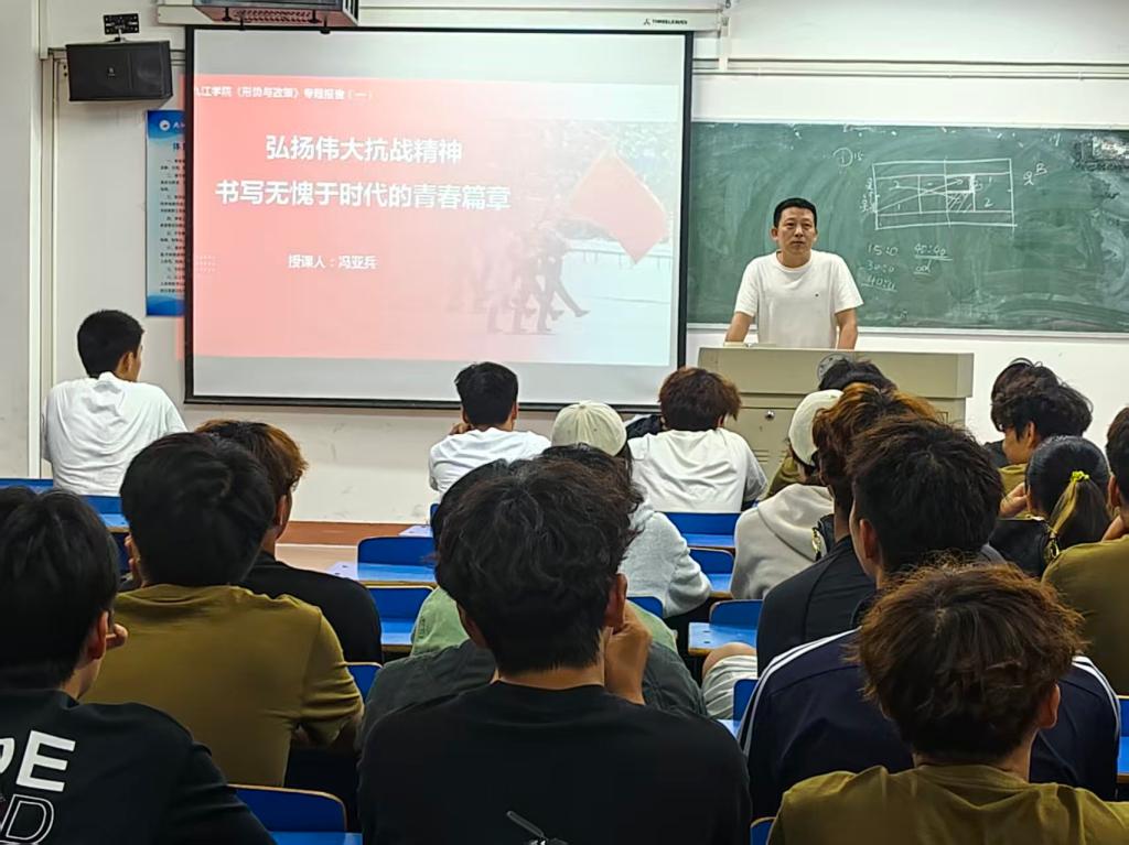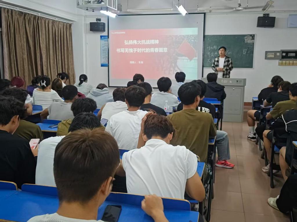 烽火岁月虽已远,抗战精神励今人。在纪念中国人民抗日战争暨世界反法西斯战争胜利80周年之际,9月24日,万象城allwincity官网领导深入学生班级,以“弘扬伟大抗战精神,书写无愧于时代的青春篇章”为主题,为学生讲授“开学第一课”,带领学生重温历史,汲取前行力量。