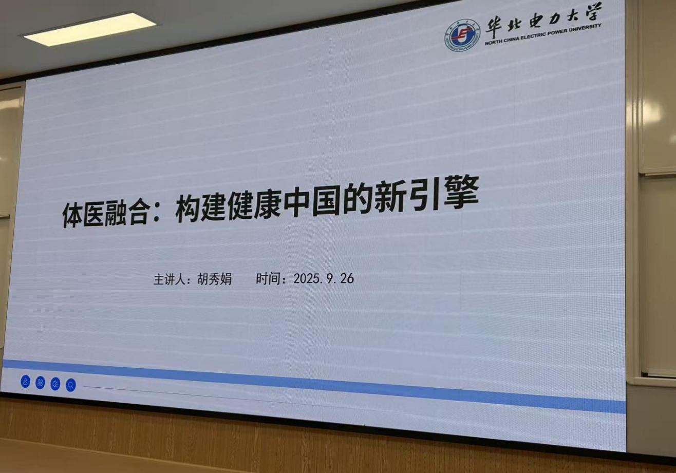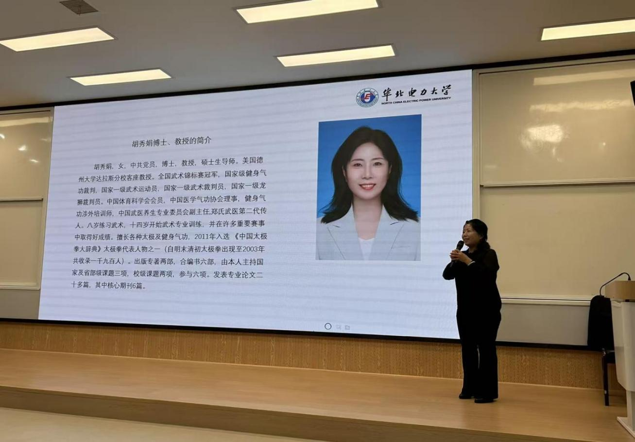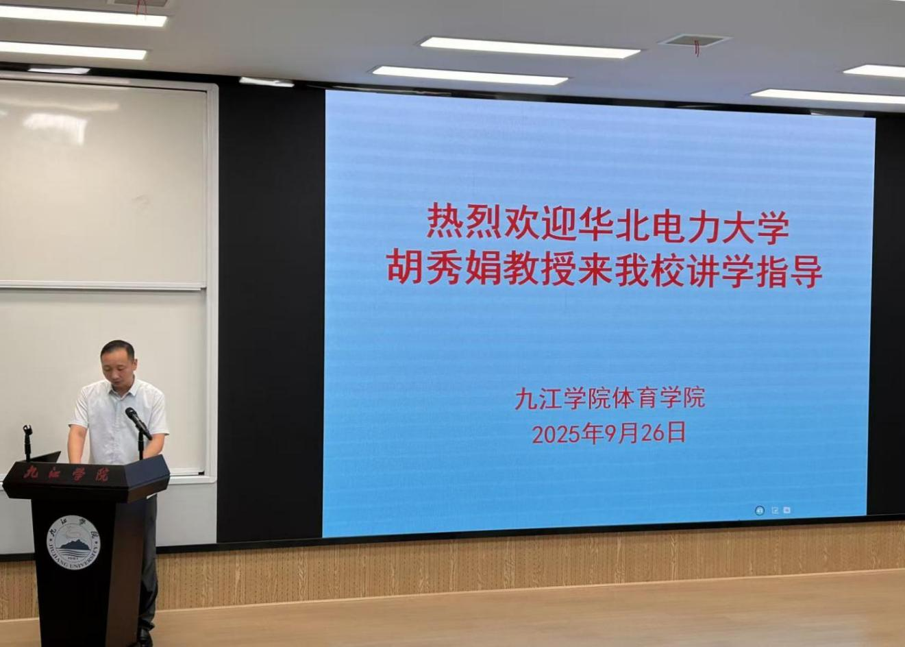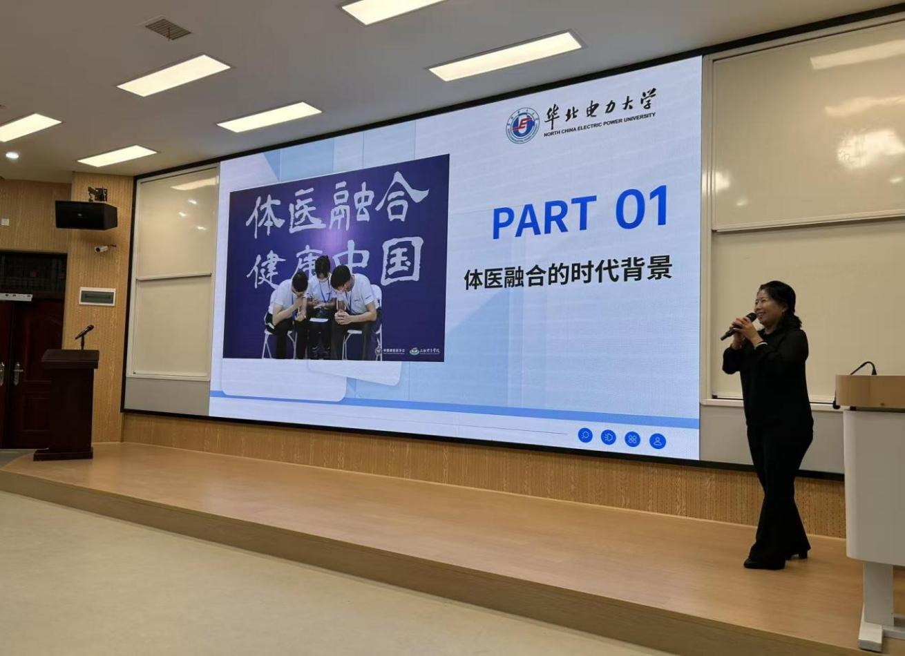 为深化体医融合理念,服务“健康中国”战略,赋能体育学科发展,9月26日晚上19点,在竞知楼阶梯教室,万象城allwincity官网荣幸邀请到华北电力大学胡秀娟教授为万象城官网师生作“体医融合,构建健康中国新引擎”的学术讲座,会议由万象城allwincity官网副院长宋涛主持,学院200余名师生聆听了讲座。