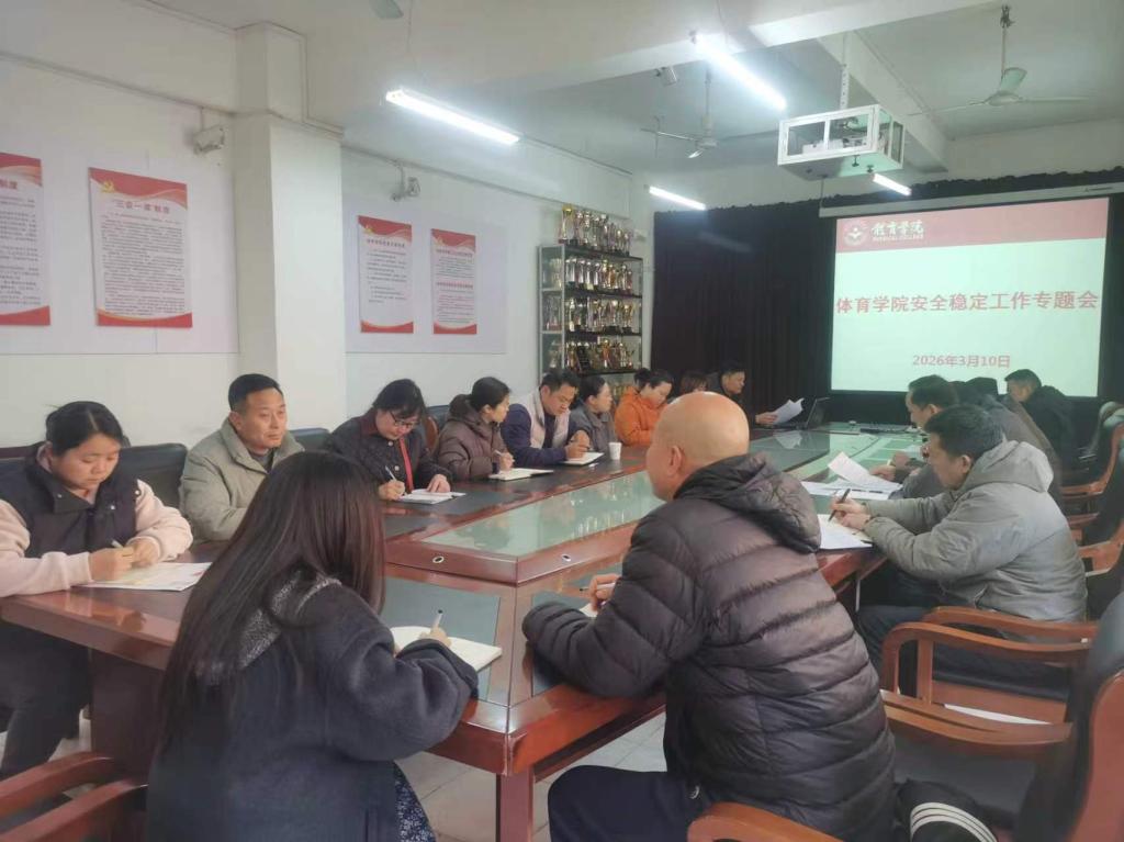 宋涛传达学习了学校2026年第一季度安全稳定工作会精神,分析了学院近期安全稳定工作情况,就学院安全稳定工作和平安建设主题宣传月活动进行部署。副院长王东升就办公场所、课堂安全、训练安全、场馆安全、实验室安全等工作做了强调。