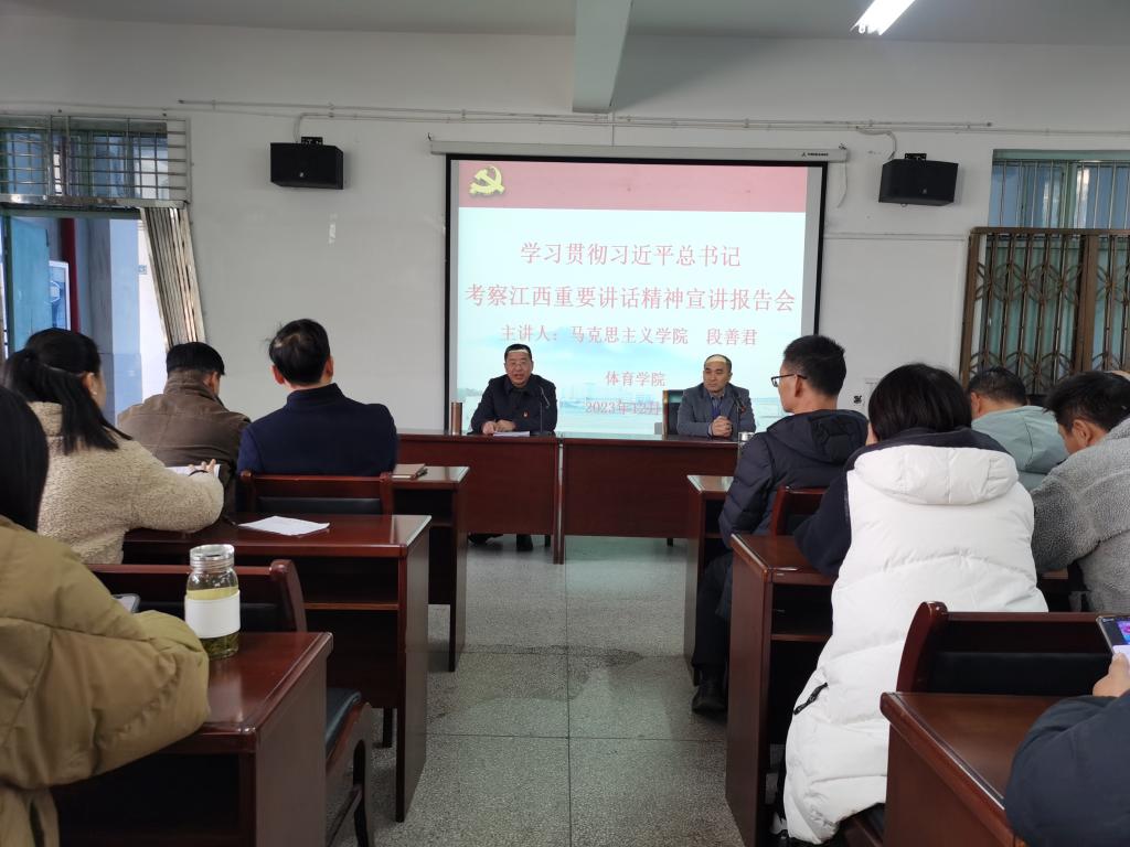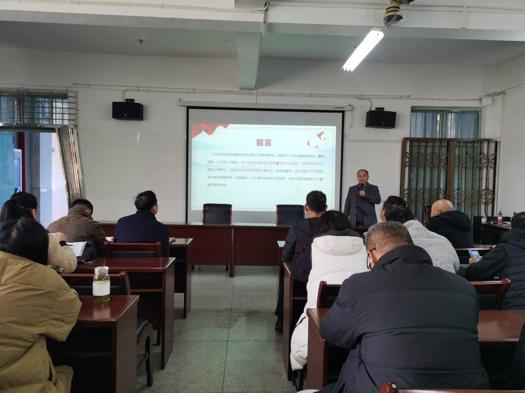 12月6日下午,万象城allwincity官网在向学楼301会议室召开党委中心组(扩大)学习会,邀请马克思主义学院段善君老师宣讲习近平总书记考察江西的重要讲话精神。学院党政班子成员、科室负责人、全体党员和全院教职工参加了宣讲会,宣讲会由院党委书记付和忠主持。
