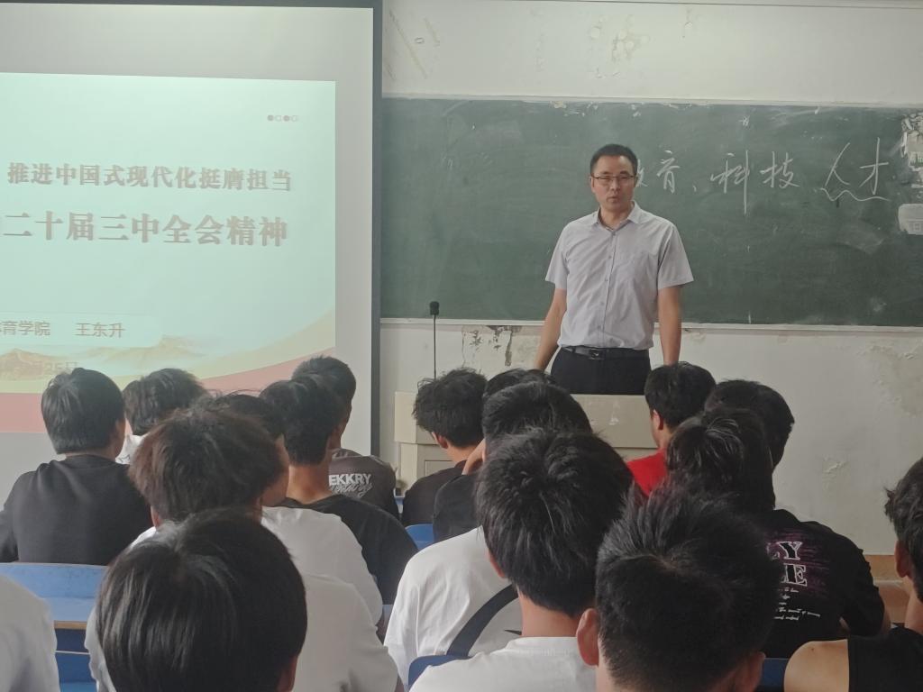 授课中,院党委书记付和忠以《为进一步全面深化改革、推进中国式现代化挺膺担当——深入学习贯彻党的二十届三中全会精神》为题,深入解读了党的二十届三中全会精神,启发引导学生全面、客观认识当前中国式现代化面临的新情况新问题,树立正确的人生观、价值观,坚定中国特色社会主义道路自信、理论自信、制度自信、文化自信。