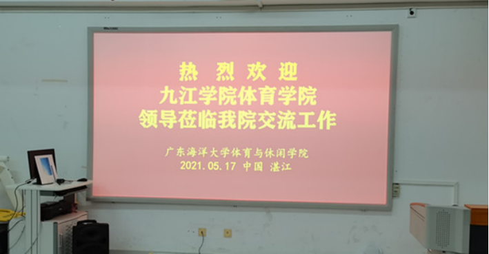 与广州海洋大学体育与休闲学院相关领导相互分享了办学经验,针对体育专业建设、人才培养、社会服务等方面进入了深入的交流。