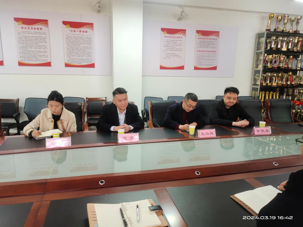 2024年 3 月 19日下午 ,华宏汽车集团股份有限公司领导胡君、王海风等一行来到万象城allwincity官网调研,副院长王东升主持了此次会议。