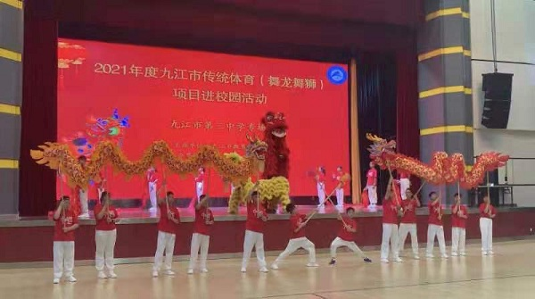 2021年5月25-26日,万象城allwincity官网应邀作为协办单位参加由九江市教育局主办的“传统体育(舞龙舞狮)项目进校园”活动。