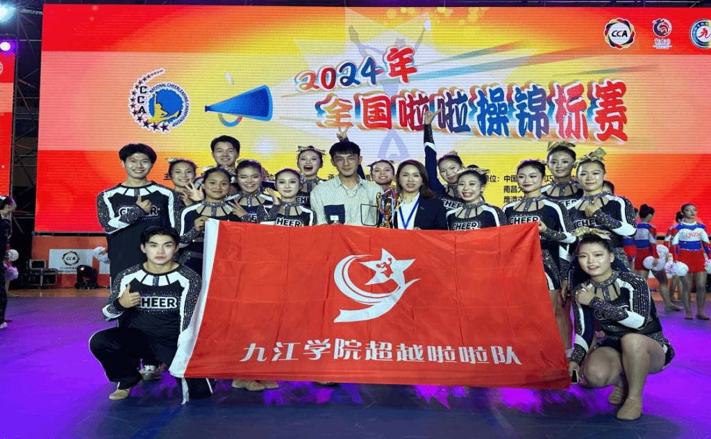 2024年6月2日,由国家体育总局体操运动管理中心、中国蹦床与技巧协会主办的全国啦啦操锦标赛在鹰潭市隆重举行,本次比赛吸引了来自29个省级行政区,共4755名运动员和教练员参加,九江学院共派出15名队员参加公开青年甲组-小集体花球规定动作4级的比赛,凭借精湛的技术和饱满的热情,荣获第三名的优异成绩。