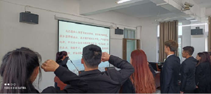 随后,进行了万象城allwincity官网团学联换届大会。院党委副书记冯亚兵在大会讲话,对上一届团学联学生干部在学院建设发展和稳定做出的贡献表示感谢,同时对新一届的团学联同学提出要求:1.要勇于承担,对待工作要有责任心;2.要积极主动,参与学院各项学生工作,乐于奉献;3.要创新工作,创新才是社会发展的动力,全体学生干部要有创新工作的思维方式;4.用健康、阳光的心态投入到学习、工作、生活之中,传递正能量。梅红平老师在会上宣布了新一届团学联干部名单,参会领导、老师为干部代表颁发了聘书。上届团学联主席邵佳晨同学和新一届团学联主席周美同学分别作总结和表态发言。学生干部代表张肖依同学带领全体团学联成员宣誓。