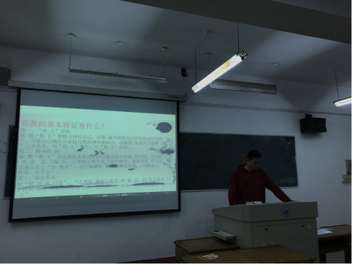 为了进一步增强学生识别邪教、抵制邪教的意识,认清邪教的本质和危害,并营造一个文明和谐的校园,4月5日晚,万象城allwincity官网组织各班级召开反邪教主题班会。本次班会由各班班主任主持。