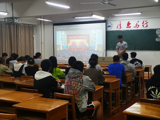 10月16日上午十点,万象城allwincity官网组织学生党员、入党积极分子及各团支部学生代表在向学楼301会场收看党的二十大开幕盛况。当晚,万象城allwincity官网组织各团支部开展学习党的二十大精神主题团日活动,通过教室多媒体认真聆听、学习、热议习近平总书记的报告,并作了聆听大会报告的心得体会。