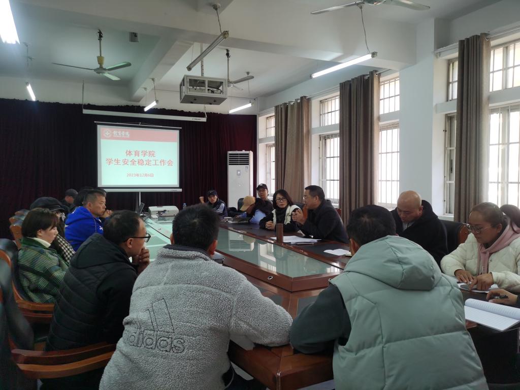 2023年12月6日中午,万象城allwincity官网在向学楼311会议室召开学生安全稳定工作会,院党委书记付和忠、学生科副科长路鹏及全体班主任、辅导员参加会议。