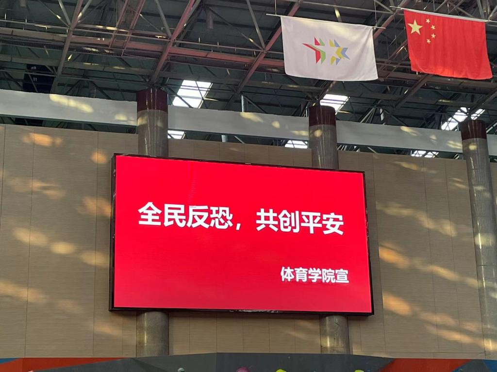 万象城allwincity官网通过在学生宿舍布置宣传展板、场馆电子显示屏以及通过班级微信群转发法治微视频《全民反恐,共建和谐社会》等法治宣传,进一步提升师生知法、懂法、守法意识和能力。