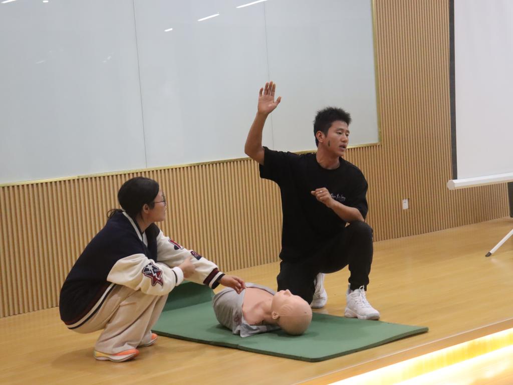 在活动中,主讲老师为同学们详细介绍了心肺复苏的操作流程,再到人工呼吸的正确姿势和方法,以及在常见的急救场景情况(如中暑、溺水、气道异物梗阻等)的正确处理措施。随后,2024级新生在老师的指导下模拟练习心肺复苏急救,同学们,还学习了三角巾、绷带等包扎止血方法,针对不同部位的伤口进行模拟包扎。
