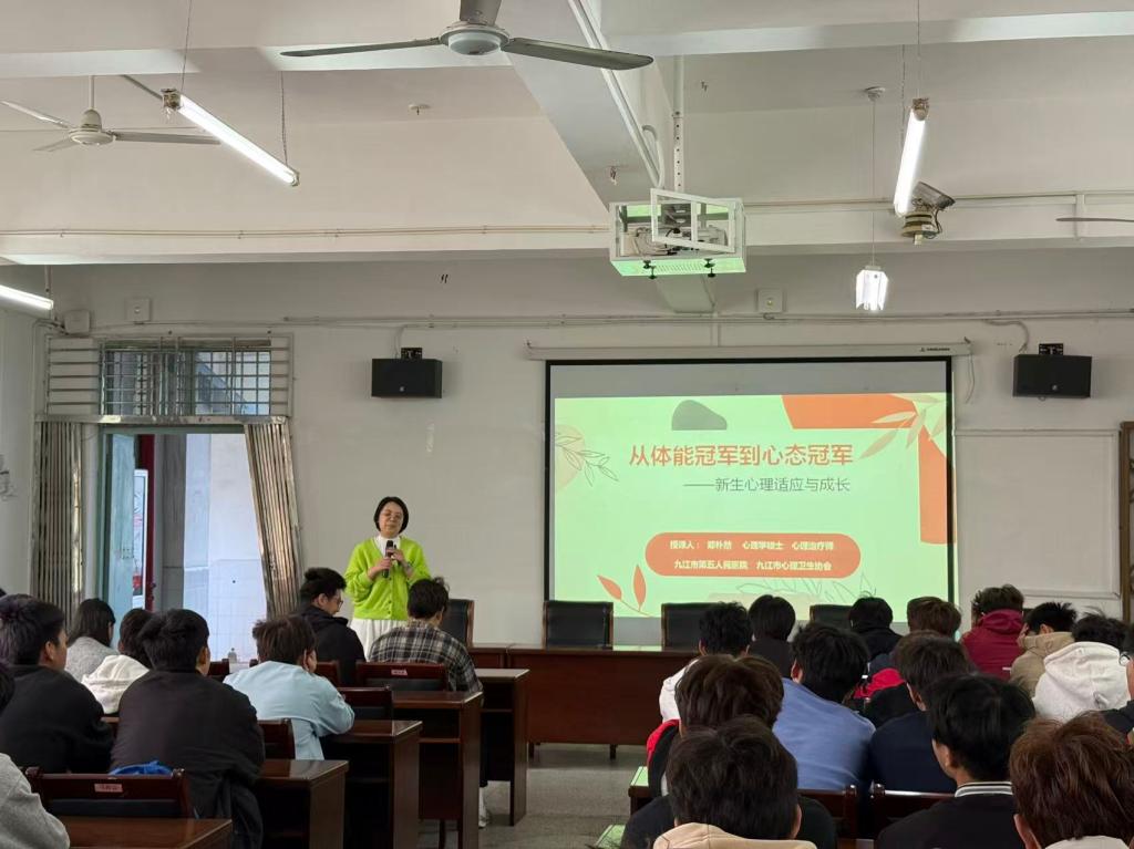 讲座上,郑朴然副主任以《从体能冠军到心态冠军--新生心理适应与成长》为题,结合体育专业学生特点,从学习适应、人际关系、个人发展等实际问题切入,进行了深入浅出的讲解。郑主任通过案例、趣味互动体验,从如何识别情绪信号、有效管理压力以及积极自我暗示等科学方法进行自我调适,内容贴近学生实际,给师生上了一堂精彩生动的心理健康教育课。现场气氛活跃,同学们也积极参与互动,从中收获了宝贵的心理健康知识。