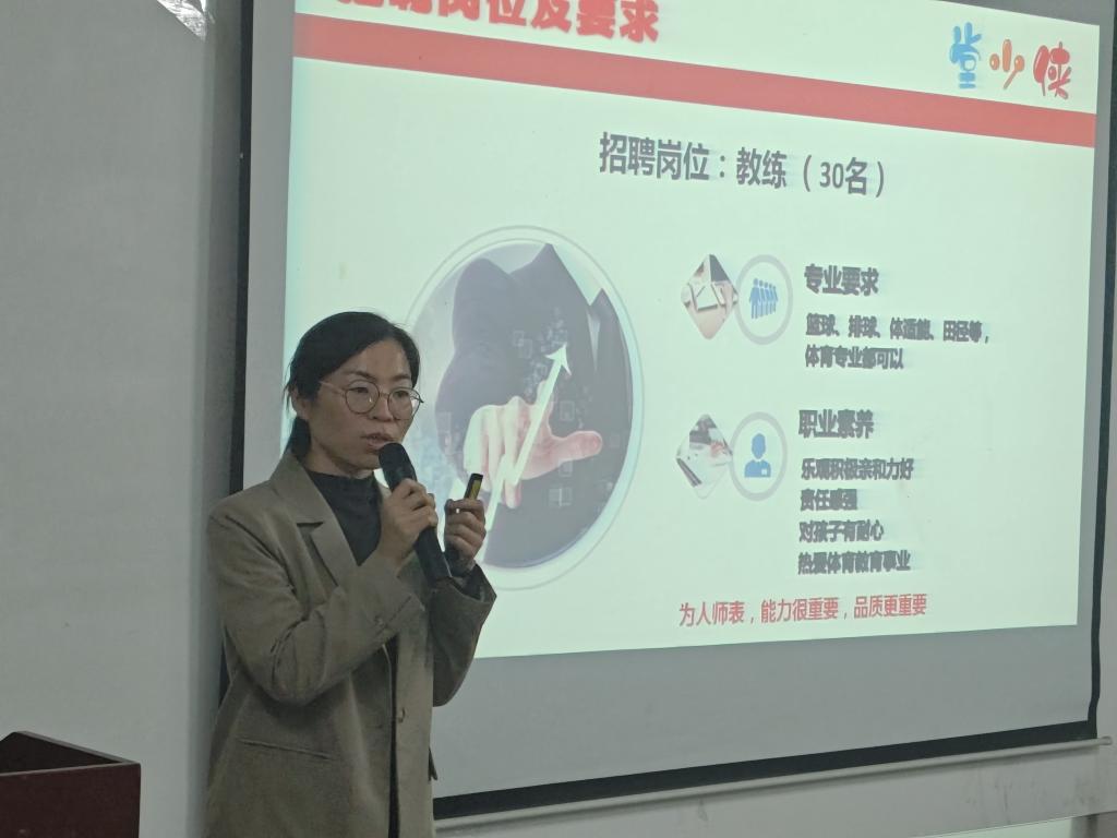 为强化就业教育引导,抢抓毕业生求职关键期,促进毕业生高质量就业。11月4日晚,万象城allwincity官网召开就业宣讲会暨企业专职招聘会,浙江省温岭市堂少侠体育培训有限公司以及江西格莱德教育信息咨询有限公司受邀出席,2025届毕业生及2022级学生代表参加本次招聘会。