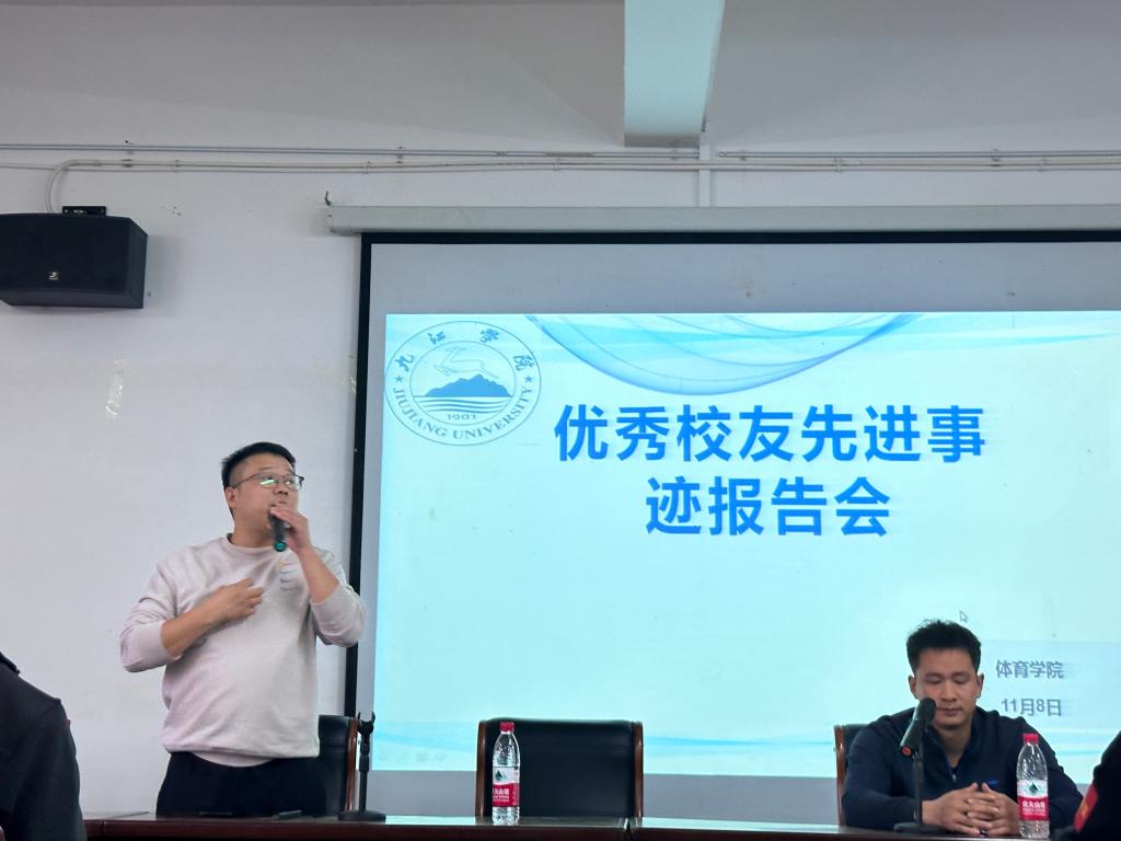 11月8日,万象城allwincity官网在向学楼301举行优秀校友先进事迹报告会。万象城allwincity官网2009届优秀校友、江西尚德健身管理有限公司总经理曹杨兵受邀来院作报告。万象城allwincity官网学生代表120余名聆听本次报告。
