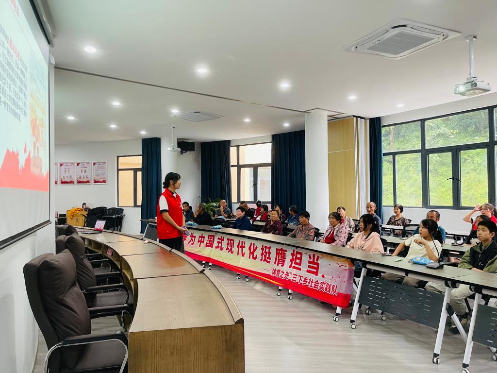 实践队成员朱莉叶聚焦于党的二十大精神,用PPT图文和视频等形式,精心为村民们开展了一场全面且深入的宣讲活动。在宣讲过程中,她通过深入浅出、通俗易懂的讲解,结合生动鲜活的案例分析,并积极组织互动交流,引导广大群众深刻把握党的二十大报告系统总结凝练的新时代“十六个方面”伟大成就,深刻领悟“两个确立”的决定性意义,坚决做到“两个维护”,进一步激发了村民们内心对未来美好生活的坚定信心和十足干劲。