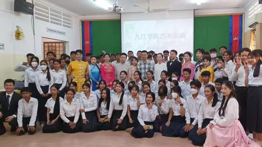 12月22日,柬埔寨王家研究院孔子学院在王家研究院高棉学者厅举办孔子学院成立20周年暨柬埔寨王家研究院孔子学院15周年庆典,郭新燕和蓝永康进行了演出,两位同学的拳术和刀术表演,体现出中国武术的独特魅力,作为一个丰盈饱满的文化载体,在一招一式中折射着中华智慧,在一拳一路中体现着中华精神,在一技一理中内隐着中华文明,武动青春是以九江学院武术队两名队员为代表,呈现出对中国传统武术的热爱。